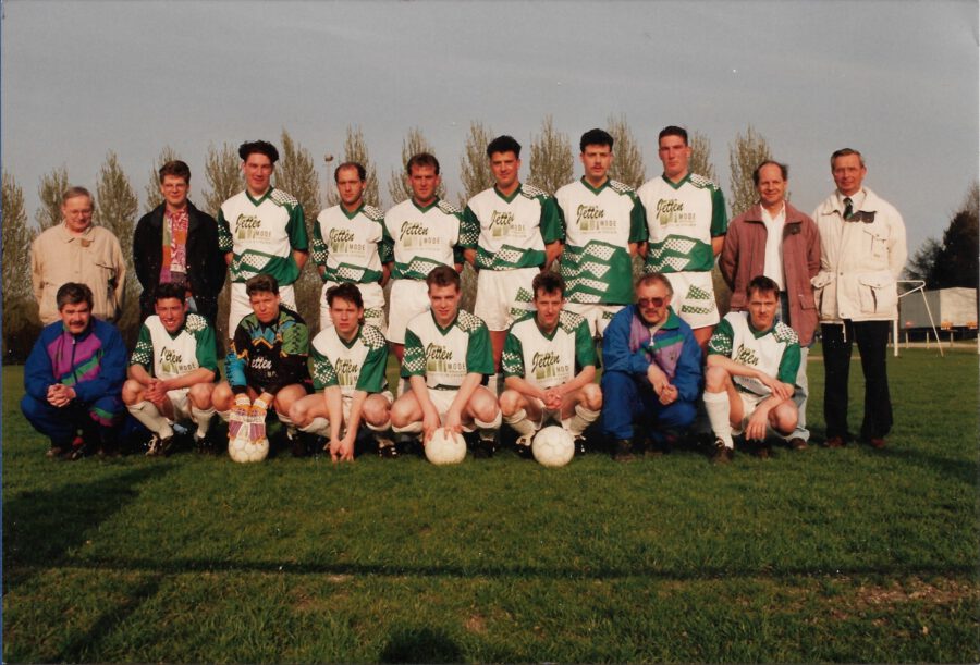 Zittend v.l.n.r. Jo Hanssen, Rob Becholtz, Fred Hofstra, Peter Spijkers, Alois Vliegen, Nico Reuleaux, Frans Wetzelaer, Werner Ramakers.