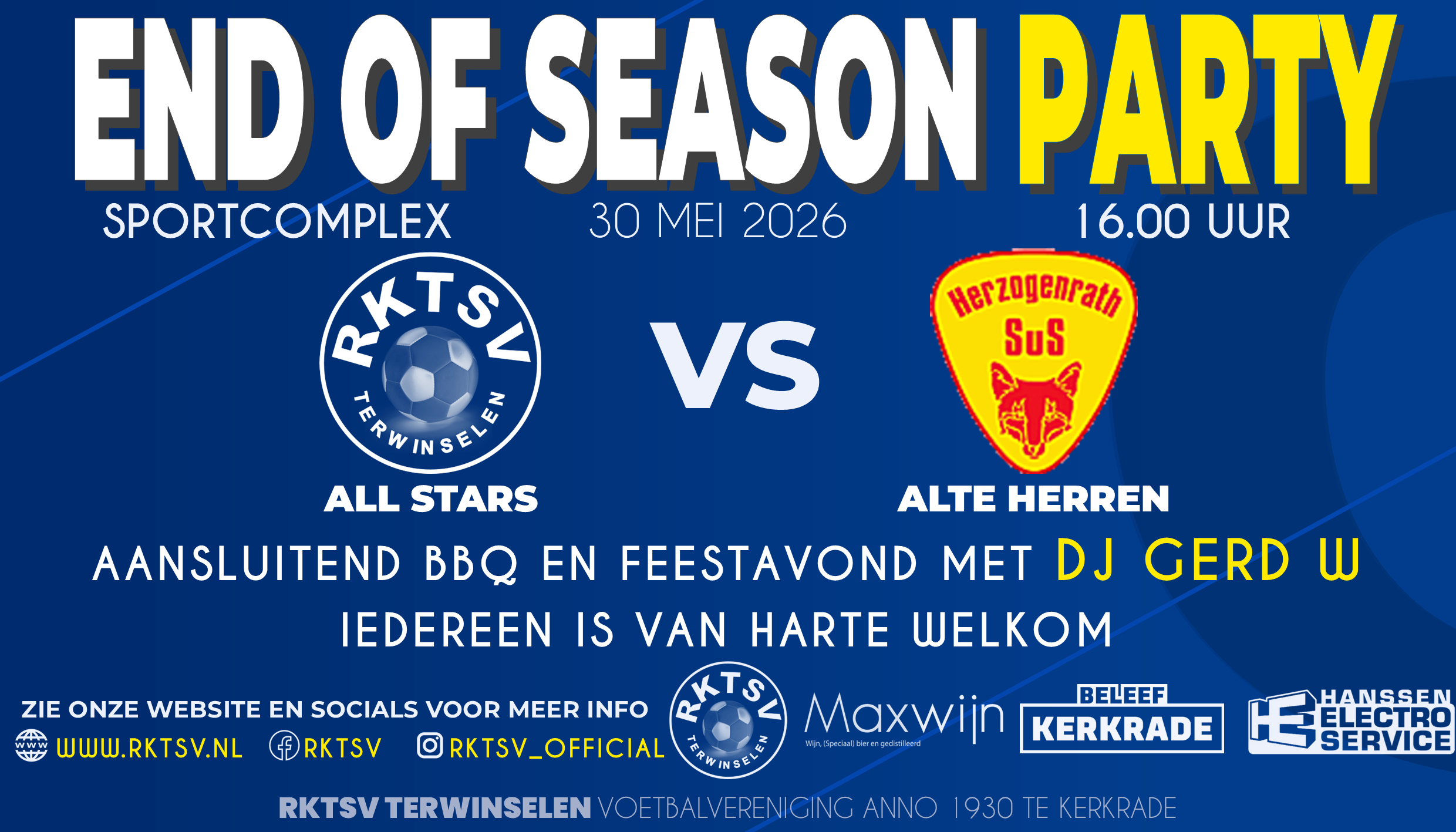 End of Season Party 2026 met om 16.00 uur een wedstrijd van de RKTSV All-Stars.